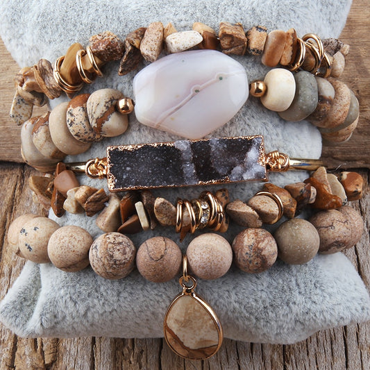 Natural Stone Druzy Bracelet Stack (Collection B)
